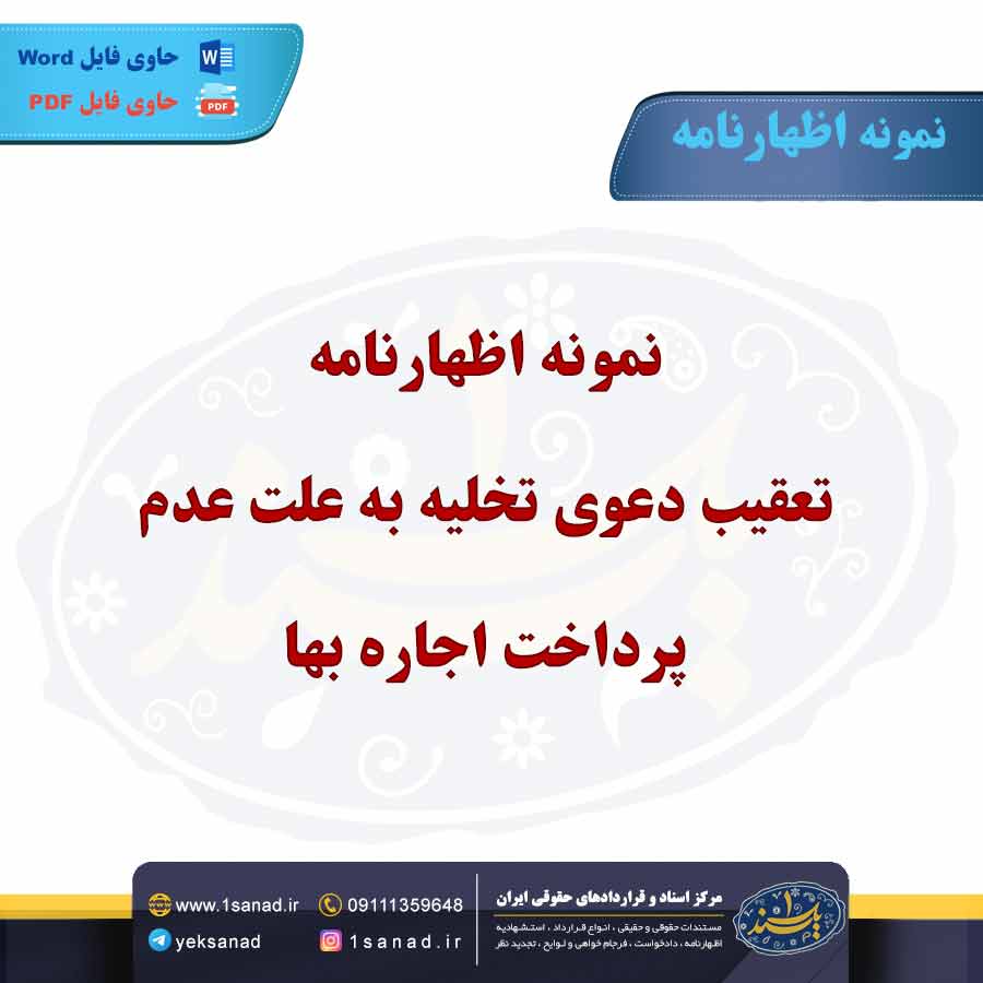 اظهارنامه تعقیب دعوی تخلیه به علت عدم پرداخت اجاره‌بها، یک سند قانونی است که توسط موجر به مستأجر ارسال می‌شود تا از او درخواست کند که اجاره‌بهای معوقه خود را پرداخت کند و در صورت عدم پرداخت، تخلیه ملک صورت گیرد. این اظهارنامه معمولاً پس از مدت زمان مشخصی که مستأجر اجاره‌بها را پرداخت نکرده است، ارسال می‌شود. در این سند، موجر به مستأجر اطلاع می‌دهد که در صورت عدم پرداخت اجاره‌بها در مهلت معین، از طریق مراجع قضایی اقدام به طرح دعوی تخلیه خواهد کرد. همچنین، اظهارنامه می‌تواند شامل تهدید به پیگیری قانونی و همچنین تعیین مهلت برای پرداخت بدهی باشد. این اقدام به منظور اعمال فشار قانونی بر مستأجر به کار می‌رود تا اجاره‌بها را پرداخت کند و از اقدام قضائی جلوگیری شود.هم اینک می توانید این سند دادخواست را جهت تنظیم موضوع مدنظر خود در قالب فایل Word و PDF پس از پرداخت آنلاین به صورت آنی دانلود نمایید.