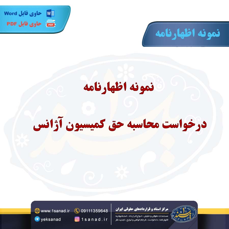 نمونه اظهارنامه درخواست محاسبه حق کمیسیون آژانس؛زمانی تنظیم می شود که یک شخص یا شرکت،از آژانس زمانی تنظیم میشود که یک شخص یا شرکت،از آژانس املاک یا مسافرتی بابت حق کمیسیون معوقه خود مطالبه دارد.در این اظهارنامه،مشخصات طرفین،جزئیات توافق یا قرارداد ،مبلغ حق کمیسیون،نحوه محاسبه آن،و استناد به قوانین مرتبط ذکر می شود.هدف از ارسال این اظهارنامه،درخواست رسمی پرداخت و تعیین مهلت مشخص برای تسویه است.در صورت عدم پاسخ یا پرداخت،این اظهارنامه می تواند به عنوان مدرک در دادخواست حقوقی مورد استفاده قرار گیرد.ارسال اظهارنامه معمولا از طریق دفاتر خدمات الکترونیک قضایی انجام می شود.