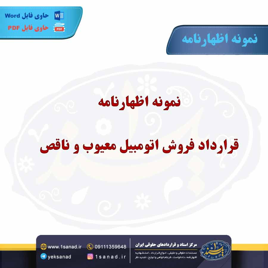 اظهارنامه قرارداد فروش اتومبیل معیوب و ناقص، نامهای است که خریدار به فروشنده ارسال میکند تا از او بخواهد که نسبت به اصلاح یا تعویض اتومبیل معیوب و ناقص طبق شرایط قرارداد اقدام کند. در این اظهارنامه، خریدار مشخص میکند که اتومبیل خریداریشده دارای عیوب و نقصهایی است که در زمان فروش به وی اطلاع داده نشده و از فروشنده درخواست میکند که در مهلت معین اقدام به رفع نقص یا تعویض اتومبیل کند. اگر فروشنده از انجام این اقدامات خودداری کند، خریدار ممکن است از طریق مراجع قضائی برای فسخ قرارداد یا دریافت خسارت اقدام کند. هدف از این اظهارنامه، حفظ حقوق خریدار و اعمال فشار قانونی بر فروشنده است.هم اینک می توانید این سند دادخواست را جهت تنظیم موضوع مدنظر خود در قالب فایل Word و PDF پس از پرداخت آنلاین به صورت آنی دانلود نمایید.