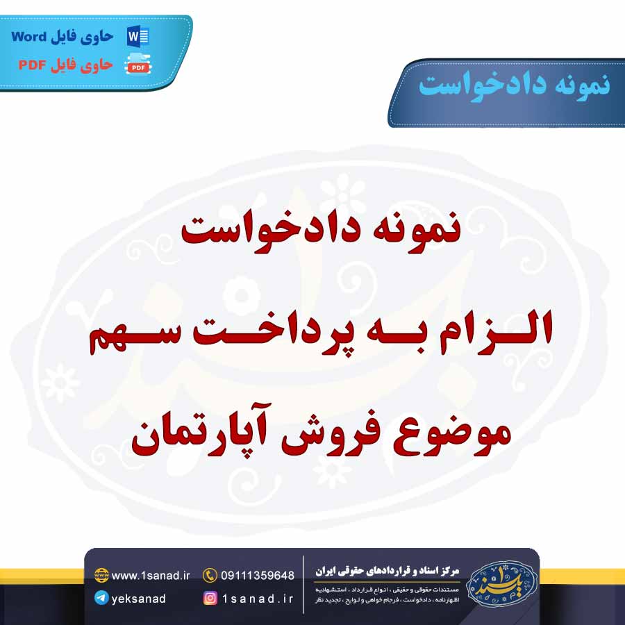 دادخواست الزام به پرداخت سهم موضوع فروش آپارتمان، درخواست قانونی است که یکی از طرفین قرارداد فروش (معمولاً فروشنده) به دادگاه ارائه میدهد تا طرف دیگر (معمولاً خریدار) را ملزم به پرداخت سهم توافقشده کند. این نوع دادخواست زمانی مطرح میشود که خریدار تمام یا بخشی از مبلغ خرید را پرداخت نکرده و فروشنده خواستار دریافت سهم خود است. در این دادخواست، فروشنده باید مدارکی مانند قرارداد فروش، رسیدهای پرداخت و مستندات دیگر را ارائه دهد. دادگاه پس از بررسی مدارک، تصمیم به الزام خریدار به پرداخت مبلغ مورد نظر میگیرد. همچنین، فروشنده ممکن است خواستار دریافت خسارتهای ناشی از تأخیر در پرداخت نیز باشد. این فرآیند معمولاً در چارچوب دعاوی ملکی و تجاری صورت میگیرد.هم اینک می توانید این سند دادخواست را جهت تنظیم موضوع مدنظر خود در قالب فایل Word و PDF پس از پرداخت آنلاین به صورت آنی دانلود نمایید.
