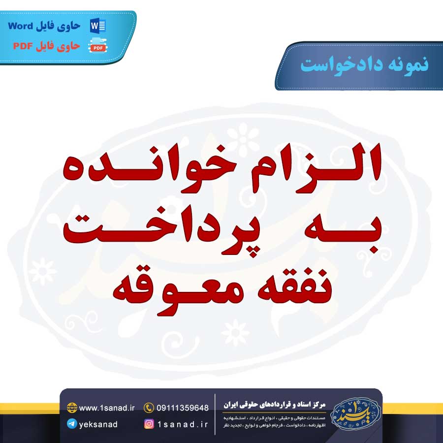 نمونه متن دادخواست الزام خوانده به پرداخت نفقه معوقه مقوم به مبلغی مشخص ، بنا بر عطف دادخواست خواهان و اختیارات حاصله از موکله به خوانده که همسر شرعی ، دائمی زوج با مهریه مشخص شده مهرالمسمی تمام سکه بهار آزادی بوده ؛ ما حصل ازدواج زندگی مشترکشان فرزندی بوده است ، متاسفانه حسب اظهارات موکله خوانده بدون پرداخت نفقه و تامین مایحتاج زندگی روزمره زوجه را رها کرده و از زندگی مشترک ، زوجه را اخراج کرده است.