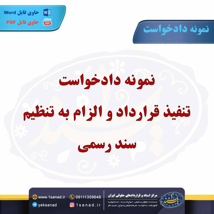 نمونه دادخواست تنفیذ قرارداد و الزام به تنظیم سند رسمی؛معمولا در مواردی مطرح می شود که خریدار و فروشنده یک قرارداد عادی(مثلا قولنامه یا مبایعه نامه) را امضا کرده اند،اما فروشنده از انتقال رسمی ملک یا مال مورد معامله خودداری می کند.در این دادخواست،خواهان (خریدار)از دادگاه درخواست می کند که اولا قرارداد منعقده را معتبر و تنفیذ کند و ثانیا خوانده را ملزم به تنظیم سند رسمی در دفترخانه نماید.خواهان باید مدارک قرارداد،رسید پرداخت،استعلام های مربوط به مالکیت و مفاصا حساب ها را ضمیمه کند و به دادگاه ارائه دهددر صورت اثبات ادعا،دادگاه پس از احراز صحت معامله،حکم به الزام خوانده برای تنظیم سند رسمی صادر خواهد کرد.