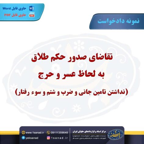 هم اینک این سند دادخواست جهت صدور حکم طلاق به صورت آماده جهت بهره برداری در موارد مشابه در قالب فایل Word و PDF با قابلیت ویرایش پس از پرداخت آنلاین به صورت آنی قابل دانلود می باشد.