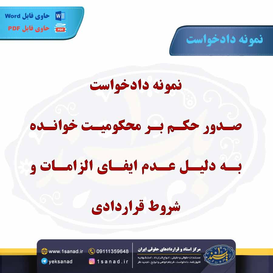 نمونه دادخواست صدور حکم بر محکومیت خوانده به دلیل عدم ایفای الزامات دادخواستی است که خواهان به دادگاه ارائه می دهد تا حکم محکومیت خوانده را به دلیل عدم انجام تعهدات یا الزامات قانونی که بر عهده او بوده است دریافت کند.در این دادخواست خواهان باید توضیح دهد.که چه الزامات یا تعهداتی از سوی خوانده نقض شده و چرا این نقض منجر به خسارت یا ضرر به او شده است این الزام ممکن است ناشی از قرارداد قوانین یا سایر توافقات باشد.خواهان باید دلایل و مستندات کافی برای اثلات نقض الزامات را ارائه کند.تا دادگاه بتواند تصمیم گیری کند،در پایان دادخواست خواهان خواسته خود را به طور مشخص بیان کرده و از دادگاه درخواست صدور حکم محکومیت خوانده می کند.