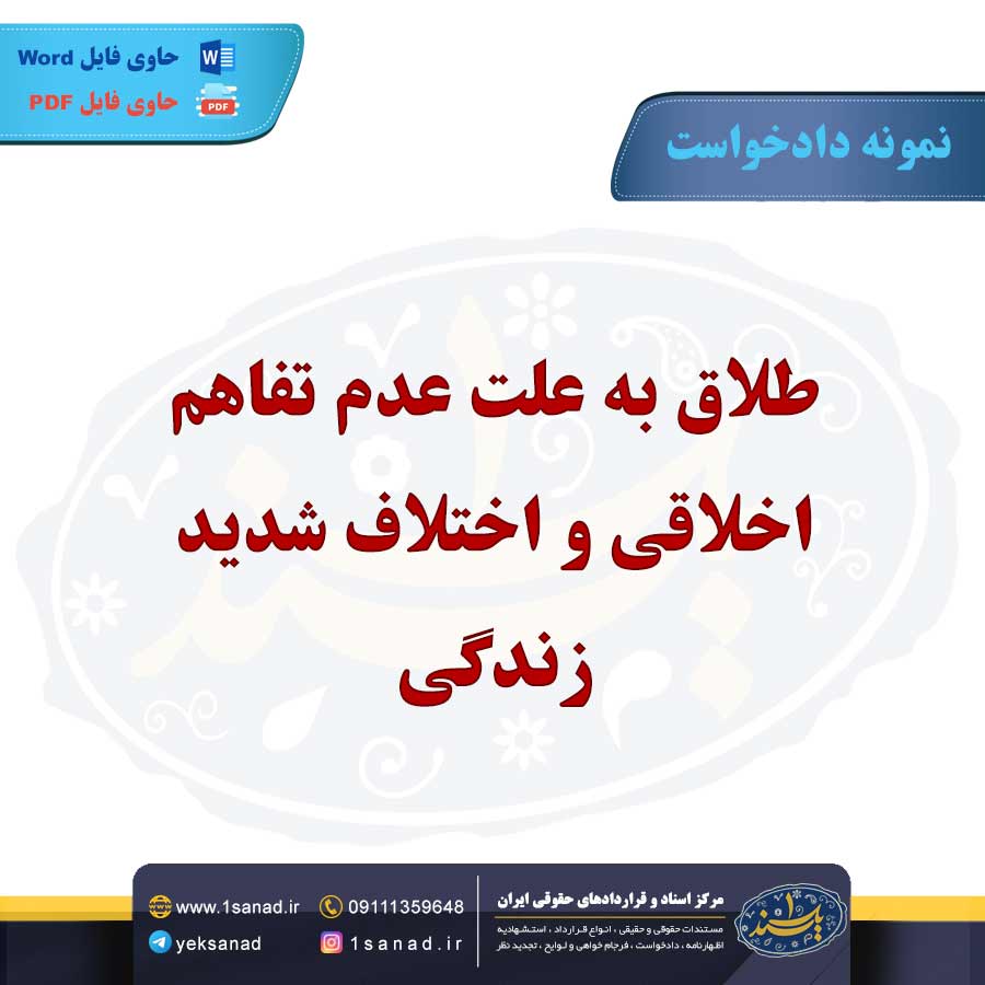 نمونه دادخواست طلاق به علت عدم تفاهم اخلاقی و اختلاف شدید زندگی ؛ در حال حاضر زوجین به علت عدم تفاهم اخلاقی و وجود اختلاف شدید حاضر به ادامه زندگی مشترک با یکدیگر نیستند. زوجین فقط به عقد دائمی همدیگر در آمده اند و زندگی مشترک خود را آغاز ننموده اند.