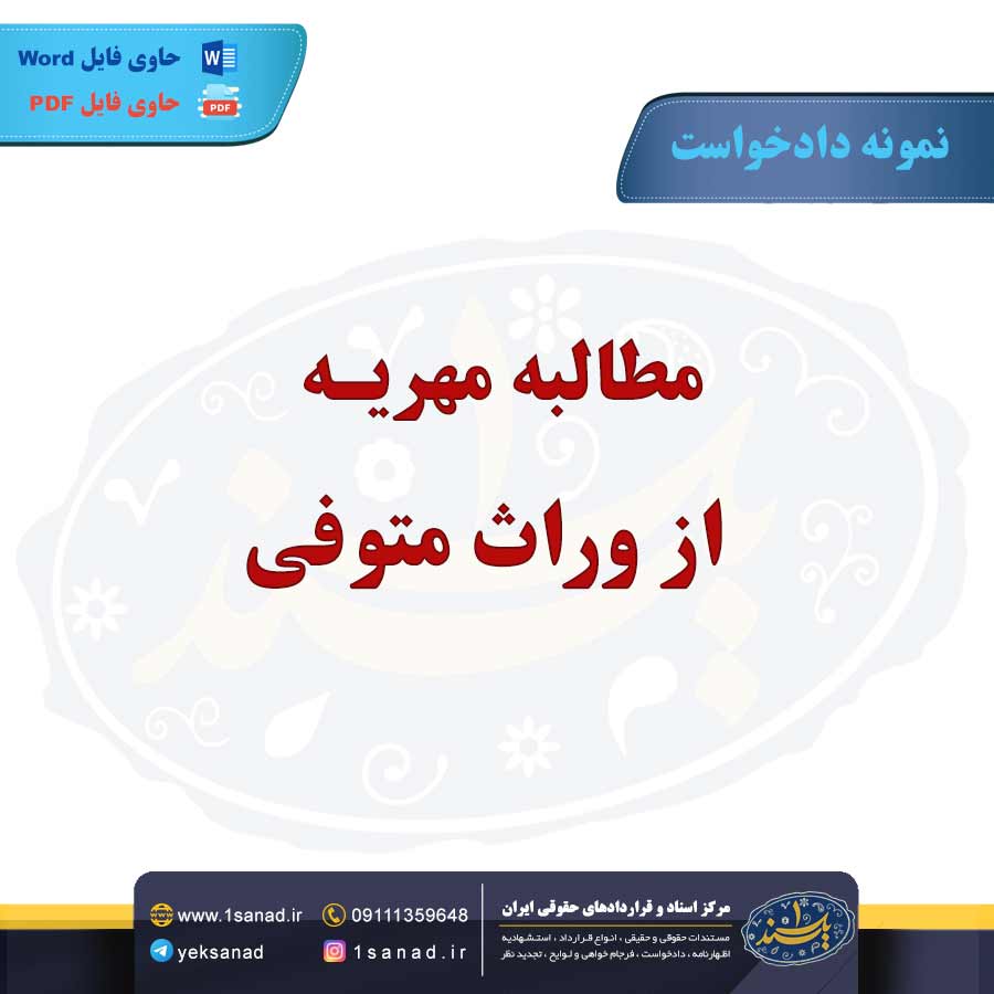 دادخواست مطالبه مهریه از وراث متوفی، به منظور دریافت مهریه زن از اموال متوفی به وراث او ارائه میشود. در این حالت، زن که مهریهاش پرداخت نشده، میتواند به وراث متوفی مراجعه کرده و از آنها درخواست کند که مبلغ مهریه را از داراییهای موجود پرداخت کنند. این درخواست باید همراه با مدارک معتبر مانند سند نکاحیه و مستندات مربوط به عدم پرداخت مهریه ارائه شود. وراث موظفند به نسبت سهم خود از ارث، مهریه را پرداخت کنند، چرا که این تعهد مالی به عهده متوفی بوده است. دادگاه پس از بررسی مدارک و دلایل ارائهشده، میتواند حکم به پرداخت مهریه صادر کند. اگر وراث به پرداخت مهریه عمل نکنند، زن میتواند اقدامات قانونی بیشتری را برای وصول مطالبات خود انجام دهد. این فرآیند به حفظ حقوق مالی زنان و تأمین امنیت اقتصادی آنها کمک میکند.هم اینک می توانید این سند دادخواست را جهت تنظیم موضوع مدنظر خود در قالب فایل Word و PDF پس از پرداخت آنلاین به صورت آنی دانلود نمایید.