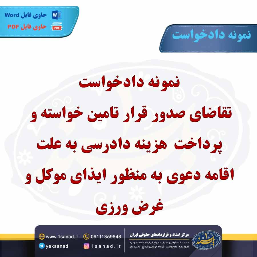 این دادخواست به دادگاه ارائه میشود و باید شامل مستندات و دلایل قانعکنندهای باشد که ضرورت صدور قرار تأمین خواسته را توجیه کند. در صورت پذیرش این دادخواست، دادگاه ممکن است اقدام به صدور قرار تأمین خواسته کند که میتواند شامل مسدود کردن حسابهای بانکی، توقیف اموال، یا دیگر اقدامات لازم باشد. هدف این فرآیند حفظ وضعیت حقوقی طرفین تا زمان صدور حکم نهایی است.هم اینک می توانید این سند دادخواست را جهت تنظیم موضوع مدنظر خود در قالب فایل Word و PDF پس از پرداخت آنلاین به صورت آنی دانلود نمایید.