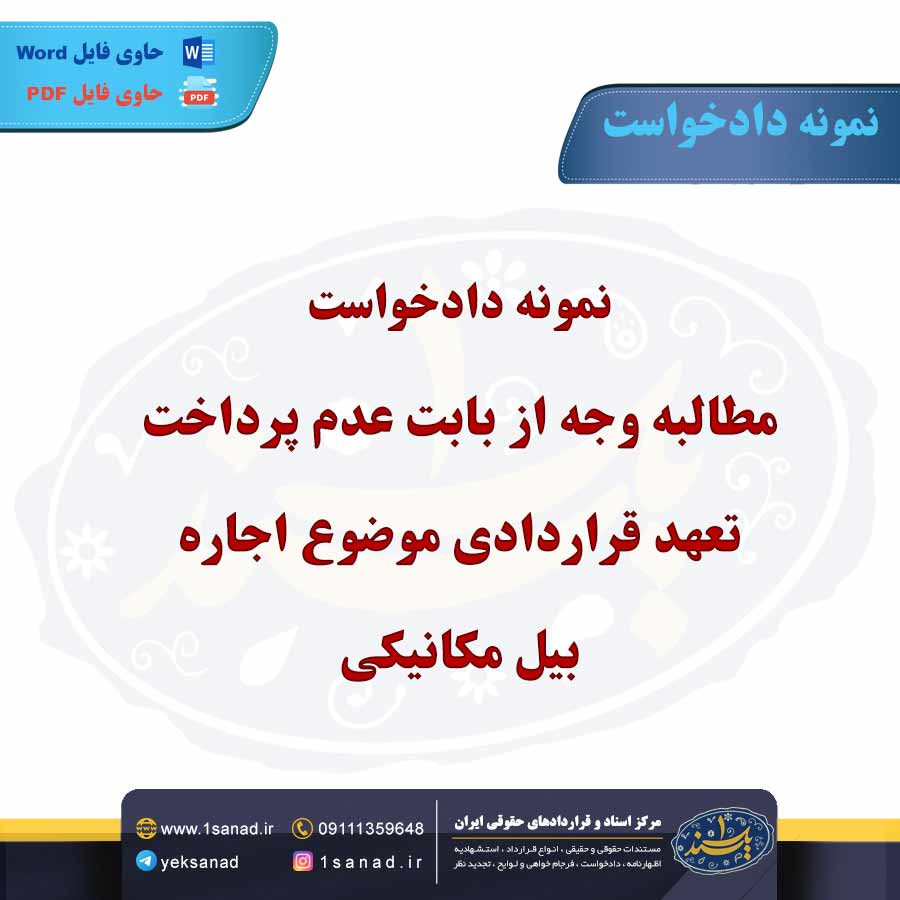 نمونه دادخواست مطالبه وجه از بابت عدم پرداخت تعهد قراردادی