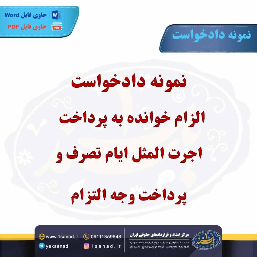 دادخواست الزام خوانده به پرداخت اجرت المثل، درخواستی است که توسط خواهان (شخصی که درخواست را ارائه میدهد) به دادگاه ارائه میشود تا خوانده (طرف مقابل) را ملزم به پرداخت اجرت المثل برای استفاده از مال یا خدماتی که بهطور غیرقانونی یا بدون توافق قبلی مورد استفاده قرار گرفته، کند. اجرت المثل به معنای هزینهای است که باید برای استفاده از مال دیگری پرداخت شود و معمولاً در مواردی مطرح میشود که مالکیت بهطور رسمی منتقل نشده باشد. در این دادخواست، خواهان باید دلایل و مستندات خود را برای اثبات حق خود ارائه دهد و نشان دهد که خوانده از مال او به طور غیرمجاز استفاده کرده است. دادگاه پس از بررسی مدارک و شواهد، تصمیمگیری کرده و در صورت تأیید حق خواهان، خوانده را ملزم به پرداخت اجرت المثل میکند. این اقدام قانونی میتواند به عنوان ابزاری برای حمایت از حقوق مالکیت و جلوگیری از سوءاستفادهها در روابط مالی تلقی شود.هم اینک می توانید این سند دادخواست را جهت تنظیم موضوع مدنظر خود در قالب فایل Word و PDF پس از پرداخت آنلاین به صورت آنی دانلود نمایید.