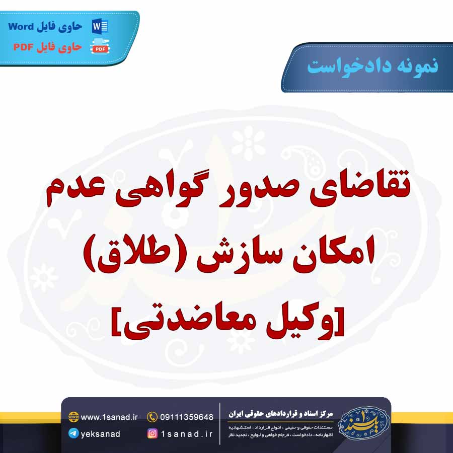 نمونه دادخواست صدور گواهی عدم امکان سازش طلاق