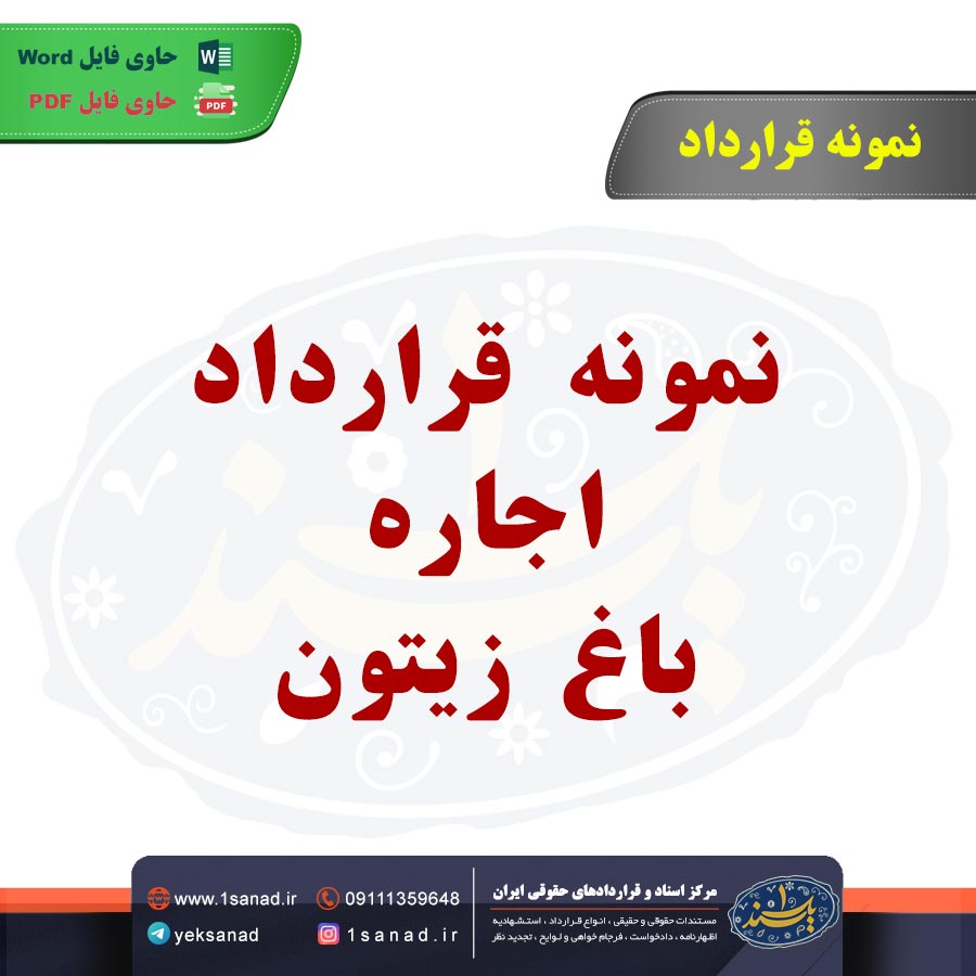 نمونه قرارداد اجاره باغ زیتون ؛ توافقی است میان مالک و مستاجر برای اجاره باغ زیتون به مدت معین و با شرایط خاص. در این قرارداد، مواردی مانند مبلغ اجاره، مدت زمان اجاره، نحوه پرداخت اجاره، مسئولیت‌های طرفین (شامل نگهداری درختان و بهره‌برداری از محصول)، و شرایط فسخ قرارداد ذکر می‌شود. همچنین، تضمین‌های مالی مانند ودیعه و تعهدات مستاجر در قبال نگهداری صحیح باغ مشخص می‌شود. این قرارداد باید طبق قوانین مربوط به اجاره و مالکیت تنظیم و امضا گردد تا از هرگونه اختلاف در آینده جلوگیری شود.هم اینک می توانید این سند دادخواست را جهت تنظیم موضوع مدنظر خود در قالب فایل Word و PDF پس از پرداخت آنلاین به صورت آنی دانلود نمایید.