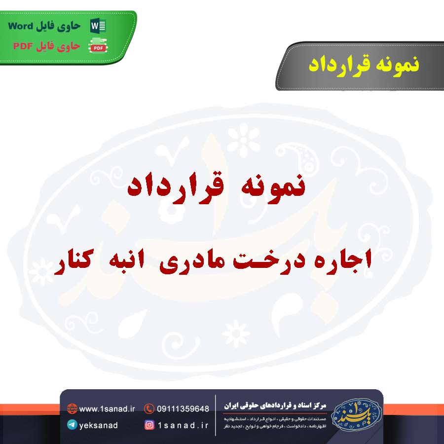 نمونه قرارداد اجاره درخت مادری انبه کنار؛نمونه قرارداد اجاره درخت مادری انبه کنار درخت، قراردادی است که در آن مالک درخت مادری انبه کنار درخت را برای مدت معینی به شخص دیگری اجاره میدهد تا از محصولات آن بهرهبرداری کند. در این قرارداد، معمولاً شرایطی مانند مدت اجاره، مبلغ اجاره، نحوه برداشت میوه، نگهداری از درخت، و مسئولیتهای هر طرف بهطور دقیق ذکر میشود. این نوع قرارداد معمولاً در مناطق کشاورزی و باغات میوه برای بهرهبرداری از درختان خاص کاربرد دارد. هدف اصلی از این قرارداد تأمین درآمد برای مالک درخت و تضمین بهرهبرداری بهینه از محصول است.هم اینک می توانید این سند دادخواست را جهت تنظیم موضوع مدنظر خود در قالب فایل Word و PDF پس از پرداخت آنلاین به صورت آنی دانلود نمایید.
