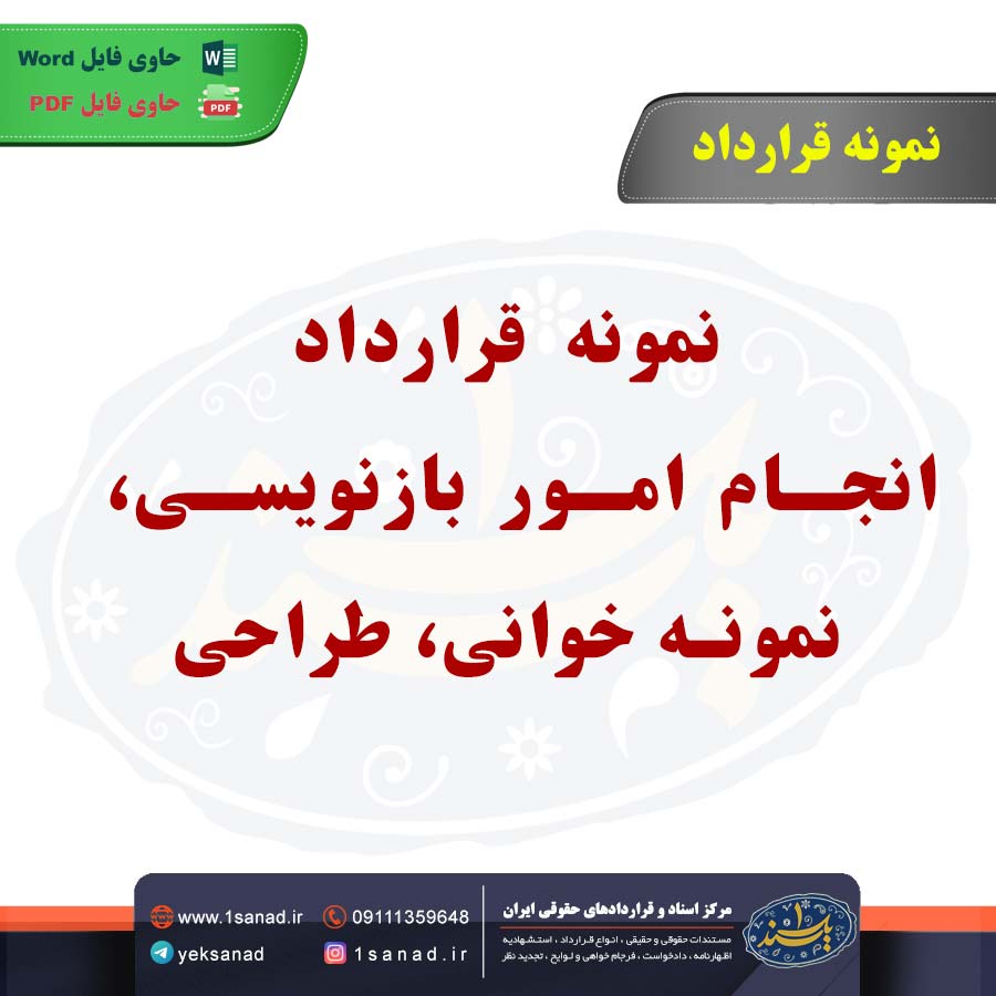نمونه قرارداد انجام امور بازنویسی، نمونه خوانی، طراحی یک توافق رسمی است که شرایط و جزئیات انجام این خدمات را بین کارفرما و پیمانکار مشخص می کند.این قرارداد شامل جزئیات مربوط به نوع خدمات،زمان بندی،تعداد صفحات یا پروژه های مورد نظر،و نحوه پرداخت است.در بخش بازنویسی،کاربر متعهد می شود که متون را به صورت روان و دقیق بازنویسی کند،در نمونه خوانی،صحت نگارش ،املاء و دستور زبان بررسی می شود.و در طراحی،قالب و نمای ظاهری مطالب به طور حرفه ای ایجاد می شود.همچنین،شرایط اصلاحات،تحویل نهایی و مسئولیت های هر یک از طرفین در آن ذکر می شود.این قرارداد به شفاف سازی انتظارات و جلوگیری از اختلافات کمک می کند.هم اینک می توانید این سند دادخواست را جهت تنظیم موضوع مدنظر خود در قالب فایل Word و PDF پس از پرداخت آنلاین به صورت آنی دانلود نمایید.