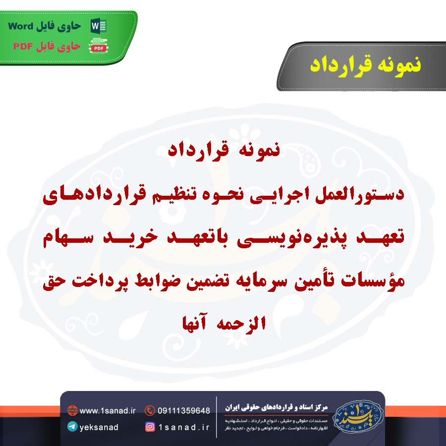 نمونه قرارداد دستورالعمل اجرایی نحوه تنظیم قراردادهای تعهد پذیرهنویسی به مجموعه مقرراتی اطلاق میشود که نحوه تنظیم و اجراییسازی قراردادهای مربوط به پذیرهنویسی سهام و اوراق بهادار را توضیح میدهد. این قراردادها معمولاً بین ناشر اوراق و پذیرهنویسان منعقد میشود و تعهدات طرفین، از جمله میزان و شرایط پذیرهنویسی، قیمتگذاری و زمانبندی عرضه، مشخص میشود. هدف از تنظیم این دستورالعملها، تضمین شفافیت، رعایت قوانین بازار سرمایه و حفاظت از منافع سرمایهگذاران است. این دستورالعملها همچنین به تنظیم حقوق و مسئولیتهای هر یک از طرفین در طول فرآیند پذیرهنویسی کمک میکنند.هم اینک می توانید این سند دادخواست را جهت تنظیم موضوع مدنظر خود در قالب فایل Word و PDF پس از پرداخت آنلاین به صورت آنی دانلود نمایید.