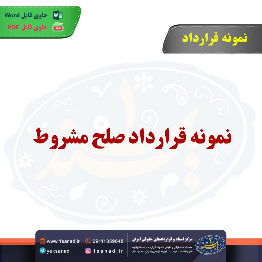 نمونه قرارداد صلح مشروط؛نمونه قرارداد صلح مشروط، قراردادی است که در آن طرفین توافق میکنند تا اختلافات یا دعاوی خود را به صلح و سازش حل و فصل کنند، اما این صلح مشروط به شرایط خاصی است. به عبارت دیگر، طرفین توافق میکنند که در صورتی که شرایط معین شده محقق شود، صلح صورت میگیرد و در غیر این صورت، هر یک از طرفین حق دارند اقدام به ادامه دعوا کنند. این نوع قرارداد معمولاً شامل جزئیاتی مانند زمان، مکان، یا رفتار خاص طرفین است که اگر تحقق یابد، صلح برقرار میشود. هدف از این قرارداد ایجاد اطمینان برای طرفین است تا از ادامه اختلافات جلوگیری شود، در حالی که در عین حال به شرایط خاص توجه میشود.هم اینک می توانید این سند دادخواست را جهت تنظیم موضوع مدنظر خود در قالب فایل Word و PDF پس از پرداخت آنلاین به صورت آنی دانلود نمایید.