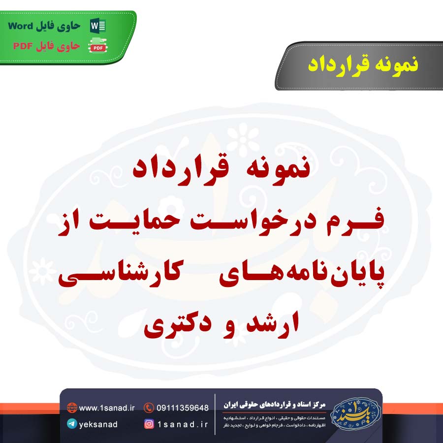 نمونه قرارداد فرم درخواست حمایت از پایان‌نامه‌های کارشناسی ارشد و دکتری
