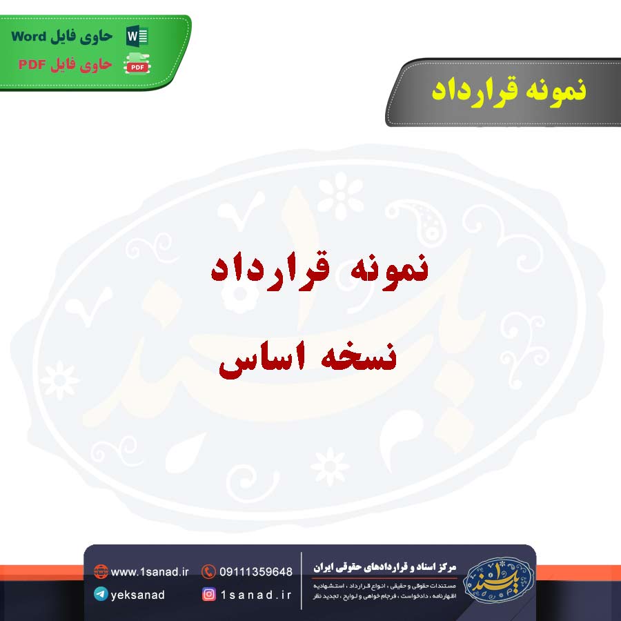 نمونه قرارداد نسخه اساس؛نمونه قرارداد نسخه اساس (یا قرارداد پیشنویس) به توافقنامهای اطلاق میشود که اصول کلی و شرایط اصلی یک قرارداد را تعیین میکند. این نوع قرارداد معمولاً قبل از نهایی شدن قرارداد اصلی تنظیم میشود و هدف آن روشن کردن مواردی مانند شرایط پرداخت، زمانبندی، و مسئولیتها است. نسخه اساس به طرفین کمک میکند تا با درک اولیه از مفاد قرارداد، به مذاکره و تنظیم قرارداد نهایی بپردازند. این سند ممکن است شامل جزئیات مربوط به مفاد حقوقی، تعهدات طرفین، و شرایط خاصی باشد که در قرارداد نهایی گنجانده میشود.هم اینک می توانید این سند دادخواست را جهت تنظیم موضوع مدنظر خود در قالب فایل Word و PDF پس از پرداخت آنلاین به صورت آنی دانلود نمایید.