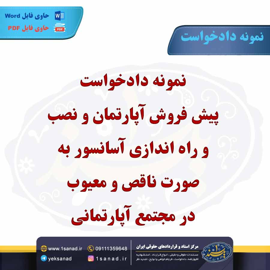 دادخواست پیش فروش آپارتمان و نصب و راهاندازی آسانسور، معمولاً از سوی خریدار یا سرمایهگذار علیه فروشنده یا سازنده ملک تنظیم میشود. در این دادخواست، خواهان ادعا میکند که فروشنده به تعهدات خود در قرارداد پیش فروش، از جمله نصب و راهاندازی آسانسور، عمل نکرده است. خریدار میتواند مستندات، مانند قرارداد پیش فروش و اسناد مربوط به تأسیسات ساختمان، را به دادگاه ارائه کند. هدف این دادخواست الزام فروشنده به اجرای تعهدات و جبران خسارات ناشی از تأخیر در ارائه خدمات است. دادگاه پس از بررسی مدارک و ادله، ممکن است حکم به الزام فروشنده برای نصب آسانسور و پرداخت خسارات احتمالی صادر کند. این فرایند به حفظ حقوق خریداران و جلوگیری از تخلفات در پروژههای ساختمانی کمک میکند.هم اینک می توانید این سند دادخواست را جهت تنظیم موضوع مدنظر خود در قالب فایل Word و PDF پس از پرداخت آنلاین به صورت آنی دانلود نمایید.