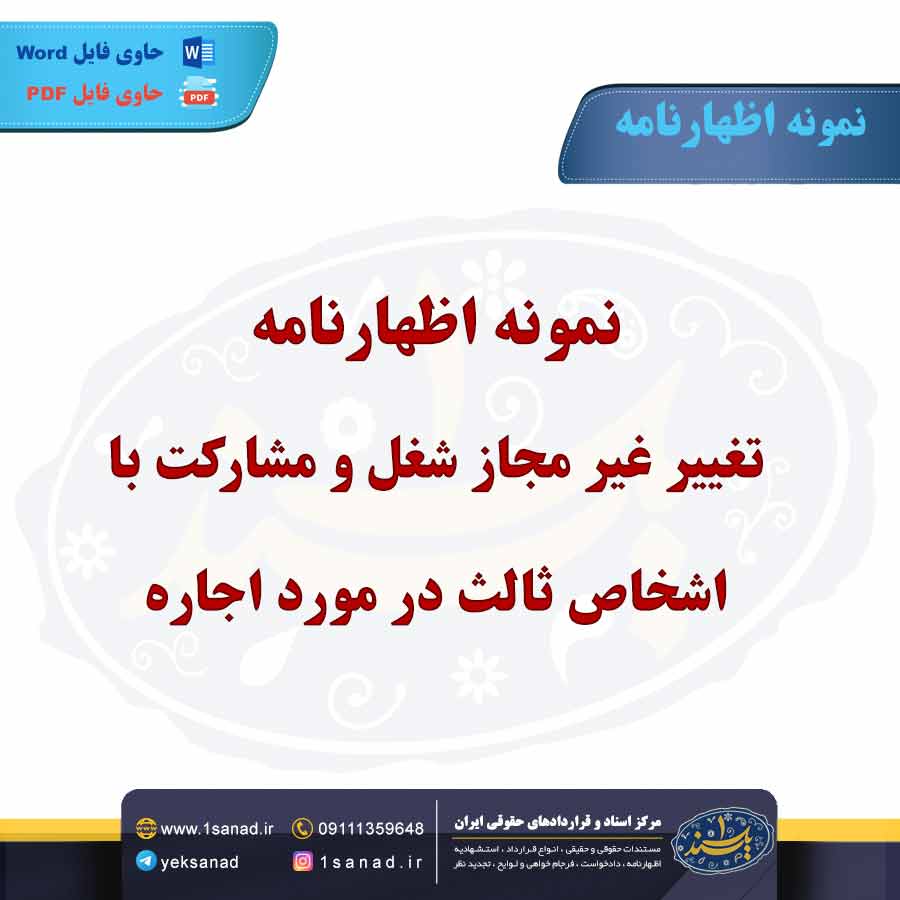 اظهارنامه تغییر غیر مجاز شغل و مشارکت به معنای گزارش و اعلام تغییرات غیرمجاز در وضعیت شغلی یا مشارکت فرد در یک فعالیت اقتصادی است. این تغییرات ممکن است شامل تغییر شغل، اضافه کردن یا حذف شریکها یا هرگونه فعالیتی باشد که بدون اطلاع یا تایید نهادهای نظارتی و قانونی صورت گرفته باشد. این نوع تغییرات میتواند شامل مواردی همچون اشتغال در شغلی غیرمجاز، تغییرات در مشارکت تجاری بدون ثبت رسمی یا فعالیتهای مشابه باشد. در صورت عدم رعایت قوانین مربوطه، مسئولین ممکن است برای فرد جریمههای مالی یا دیگر اقدامات قانونی در نظر بگیرند. این اظهارنامه برای جلوگیری از تخلفات اقتصادی و شفافیت در فعالیتهای تجاری مورد استفاده قرار میگیرد.هم اینک می توانید این سند دادخواست را جهت تنظیم موضوع مدنظر خود در قالب فایل Word و PDF پس از پرداخت آنلاین به صورت آنی دانلود نمایید.