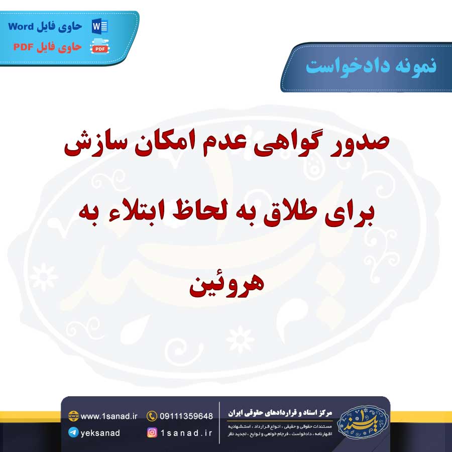 نمونه دادخواست طلاق اعتیاد به هروئین