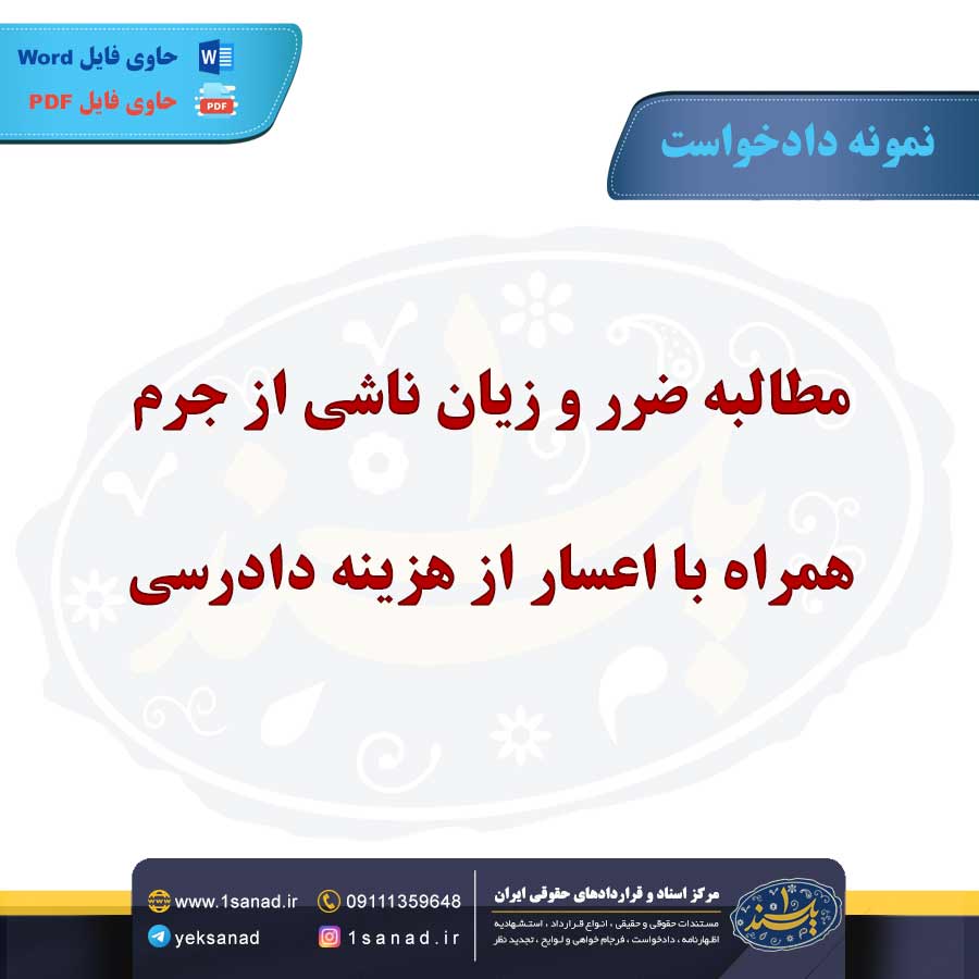 نمونه دادخواست مطالبه ضرر و زیان ناشی از جرم همراه با اعسار از هزینه دادرسی؛ خوانده با اسامی جعلی که برای خود انتخاب کرده بود توانست موکل را فریب دهد با فریب کاری و دروغ هایی که خود را به جای دکتر معرفی کند تا بتواند از موکل مبلغی اخاذی کند.
