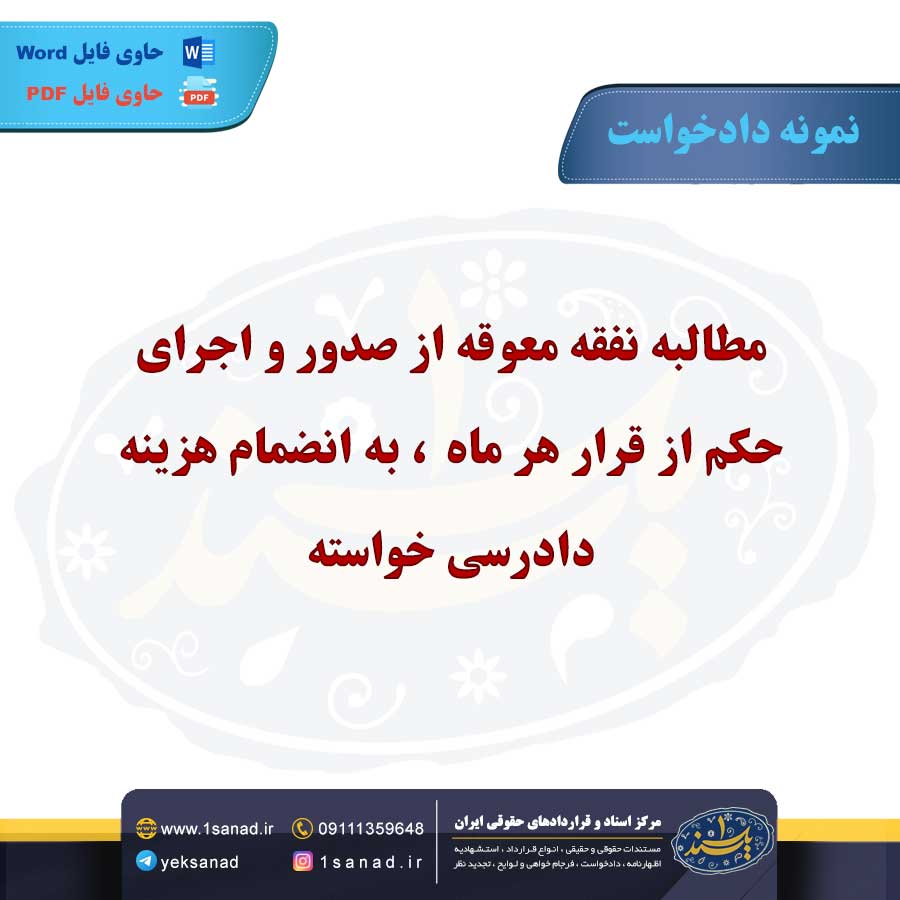 نمونه دادخواست مطالبه نفقه معوقه اجرای حکم قرار هر ماه