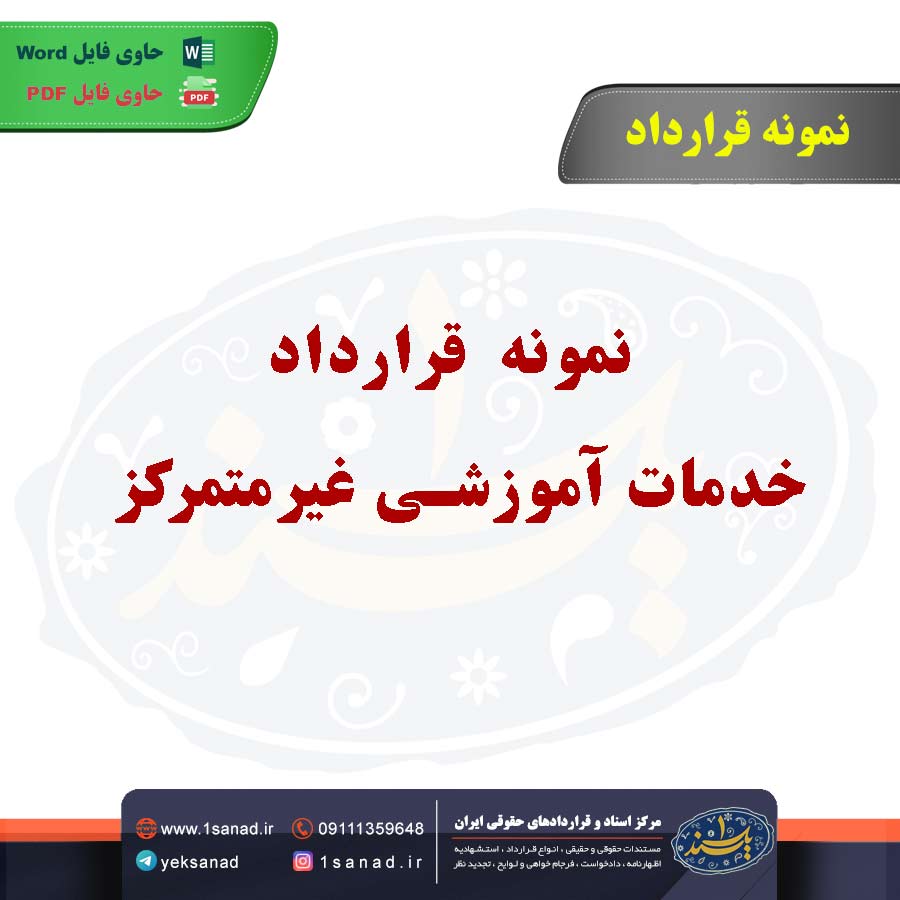نمونه قرارداد خدمات آموزشی غیرمتمرکز؛نمونه قرارداد خدمات آموزشی غیرمتمرکز به توافقنامهای اطلاق میشود که در آن طرفین (معمولاً مؤسسات آموزشی و ارائهدهندگان خدمات) شرایط ارائه آموزش به روشهای غیرمتمرکز، مانند آموزش آنلاین یا دورکاری، را مشخص میکنند. این قرارداد معمولاً شامل جزئیات مربوط به برنامههای آموزشی، مدت زمان دورهها، نحوه ارزیابی دانشآموزان، و مسئولیتهای طرفین در تأمین منابع آموزشی است. همچنین، شرایط پرداخت، دسترسی به مواد آموزشی و قوانین مربوط به محرمانگی اطلاعات نیز در آن ذکر میشود. هدف این قرارداد تسهیل فرآیندهای آموزشی از راه دور و تضمین کیفیت و استانداردهای آموزش است.هم اینک می توانید این سند دادخواست را جهت تنظیم موضوع مدنظر خود در قالب فایل Word و PDF پس از پرداخت آنلاین به صورت آنی دانلود نمایید.