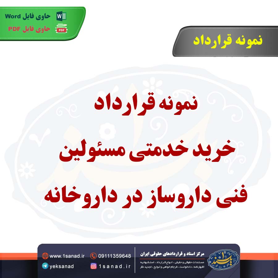 نمونه قرارداد خرید خدمتی مسئولین فنی داروساز در داروخانهها؛نمونه قرارداد خرید خدمتی مسئولین فنی داروساز در داروخانهها، توافقنامهای است که بین داروخانه و داروساز مسئول فنی تنظیم میشود. این قرارداد شامل شرایط همکاری، مدت زمان مسئولیت، وظایف و حقوق طرفین میباشد. مسئول فنی باید طبق قوانین سازمان نظام پزشکی و سازمان غذا و دارو، وظایف نظارتی و قانونی خود را در داروخانه انجام دهد. همچنین، مبلغ و شرایط پرداخت نیز در این قرارداد مشخص میشود. این قرارداد معمولاً به صورت ماهیانه یا سالیانه و با توجه به حجم کار داروخانه تنظیم میشود.هم اینک می توانید این سند دادخواست را جهت تنظیم موضوع مدنظر خود در قالب فایل Word و PDF پس از پرداخت آنلاین به صورت آنی دانلود نمایید.